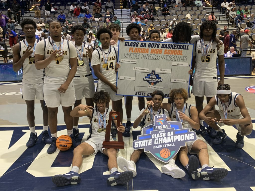 That made the final a rematch of last year’s 6A title game, which STA won in a nailbiter. Evans jumped on top early and led by the score of 14-5 after one period. St. Thomas Aquineas flipped that script in the second quarter, outscoring Evans by twenty points to lead by eleven at the break. STA would win the third and fourth quarters to grab the Class 6A crown by the score of 67-51. STA’s advantage in point from turnovers (15-4) and second chance points (16-4) were each significant contributing factors to their win.