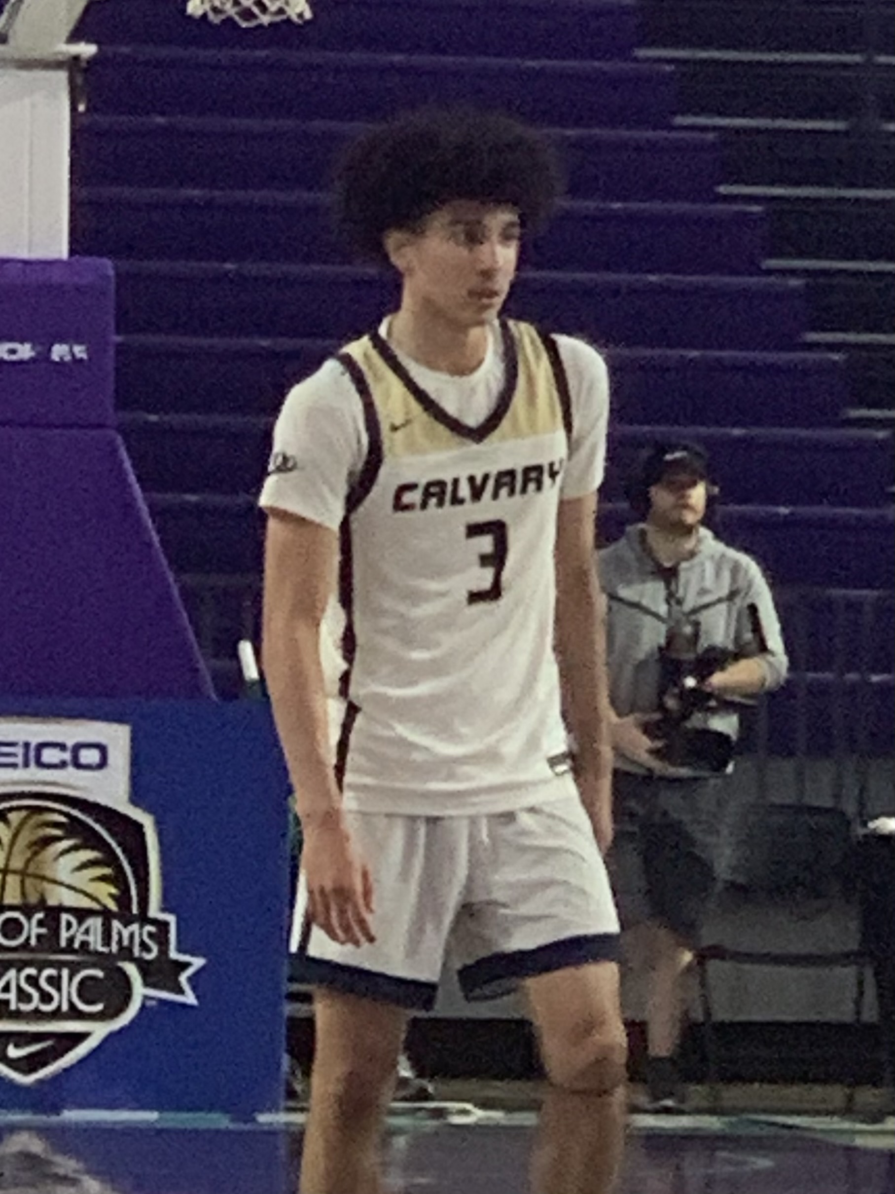 Cayden Daughtry, Clearwater Calvary Christian: The 6’1 junior had 28 points in an opening night victory over Owasso from OK then 23 points in a quarter-final loss against one of the better teams in the country in Paul VI out of the DC Catholic league. He is able to overcame a lack of size and strength right now with his ability to knock down shots well past the high school three-point line as well as find ways to penetrate the defense and make plays, either for himself or others. Daughtry was quite efficient in his offense, shooting 50+% from the field over the course of those two contests.